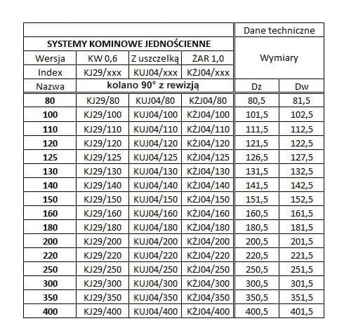 Kolano żaroodporne 90 st z rewizją