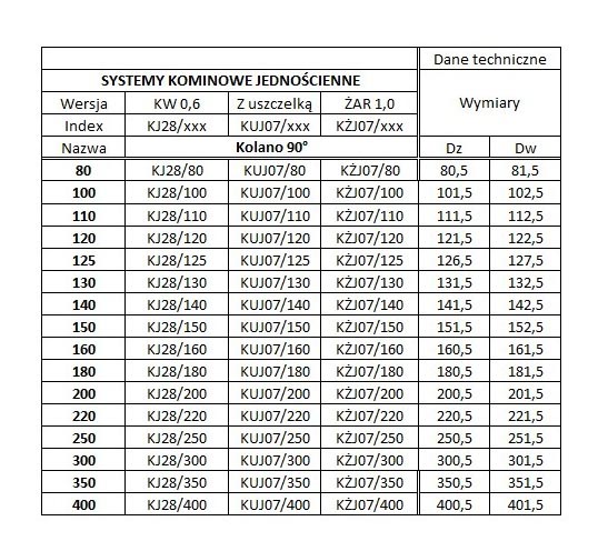 Kolano żaroodporne 90 st