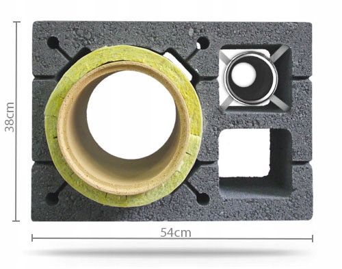 - ✅ szerokość pustaka kominowego 38cm (grubsza ścianka 5cm) co w odróżnieniu od pustaków konkurencji zapewnia lepszą izolację oraz stabilność komina