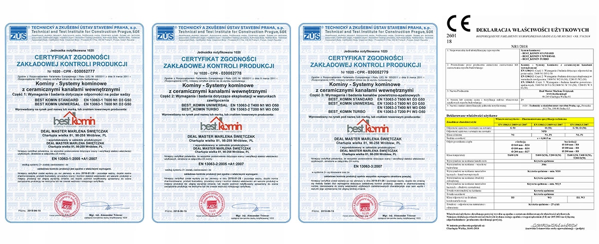 Nasz zestaw zawiera jeden z najlepszych wkładów ceramicznych produkowanych na świecie! Ceramiczne przewody kominowe P-D Refractories A1N1 odporne na pożar sadzy (mają zastosowanie w odprowadzaniu spalin z urządzeń grzewczych opalanych paliwem stałym, gazem lub olejem opałowym w których temperatura spalin dochodzi do 600° C) Klasa A1N2, dostępna na rynku, nadaje się tylko do spalin suchych, gdzie nie występuje efekt skraplania się spalin.