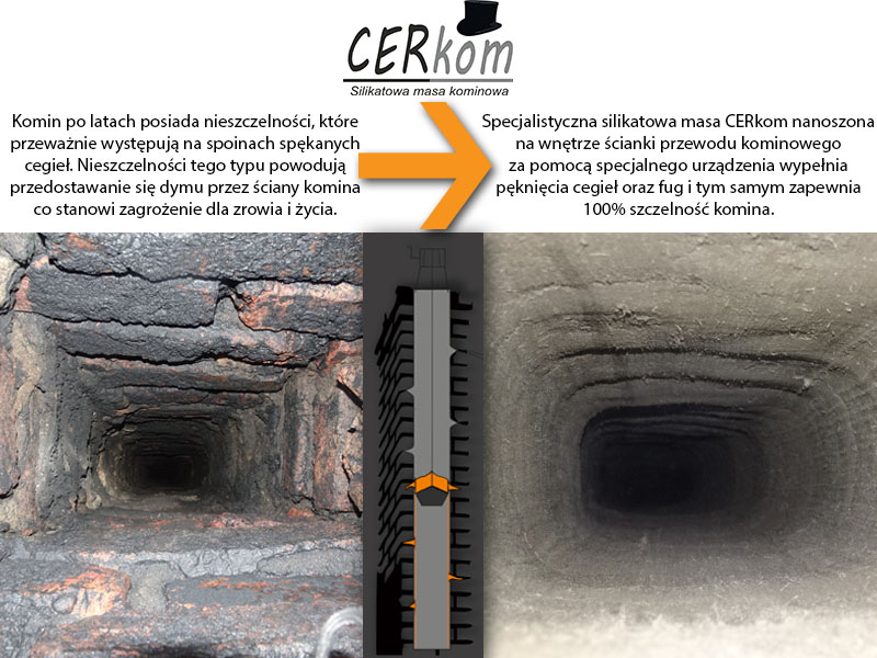 Masa CERkom to silikatowa masa służąca do uszczelniania kominów dymowych , spalinowych i wentylacyjnych pracujących w trybie suchym gdzie temperatura spalin jest wyższa niż 160 oC.