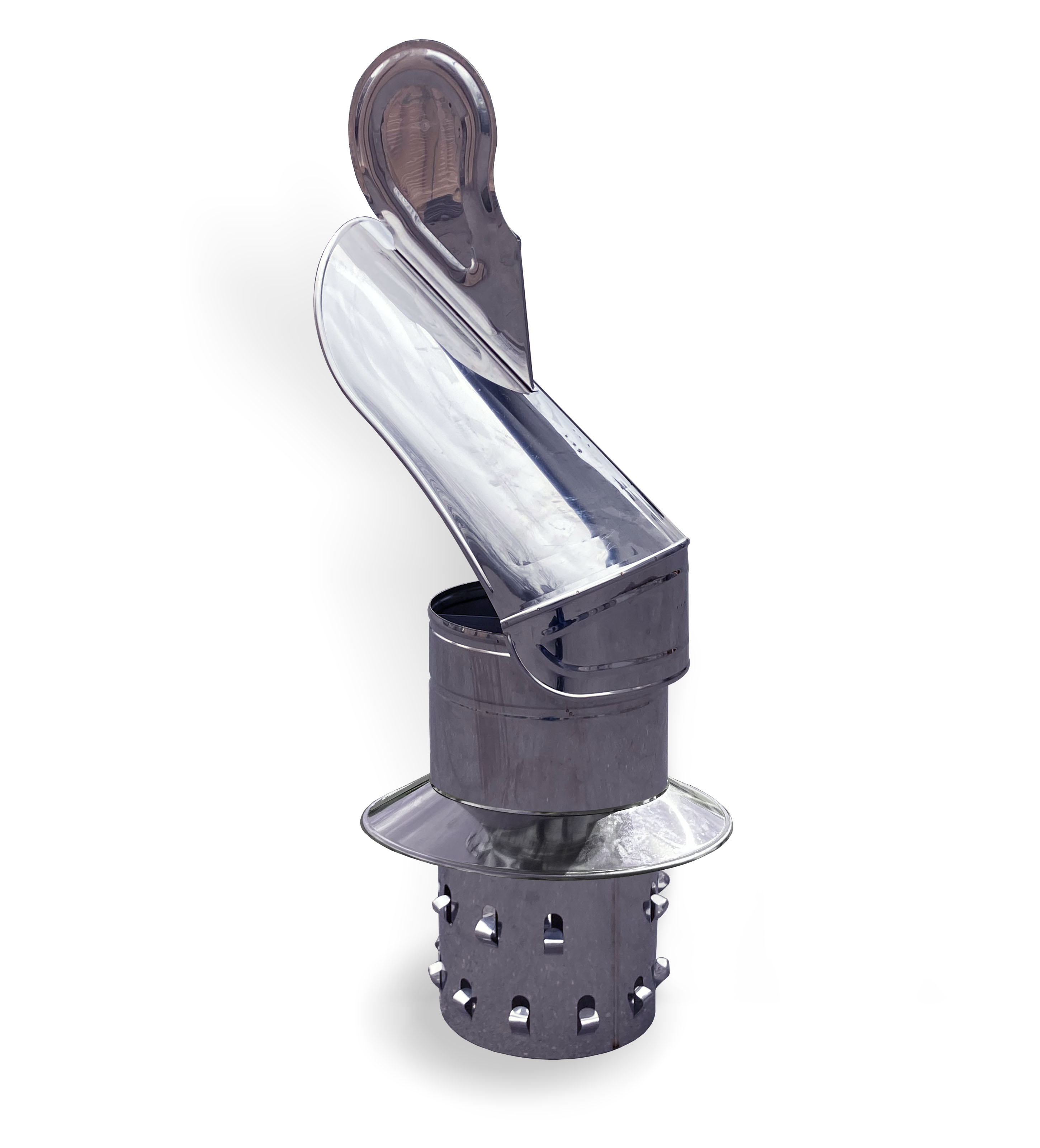 Nasada kominowa typu strażak wykonana z blachy kwasoodpornej o grubości 0,6 mm (stal nierdzewna 1.4404) to niezawodne rozwiązanie wspomagające działanie systemów kominowych. Główne zadanie produktu to poprawa ciągu kominowego grawitacyjnego poprzez generowanie podciśnienia na wylocie komina pod wpływem owiewającego nasadę wiatru, co jednocześnie zapobiega powstawaniu niepożądanego ciągu wstecznego.
