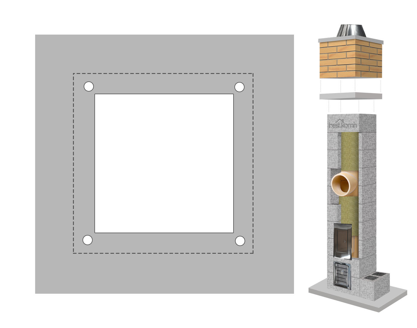 ✅ Dzięki gotowej płycie fundamentowej pod obmurówkę, montaż kominów staje się znacznie łatwiejszy i szybszy. Nie ma już potrzeby samodzielnego wylewania betonu, co eliminuje ryzyko zniszczenia ceramiki lub wentylacji w trakcie prac budowlanych.