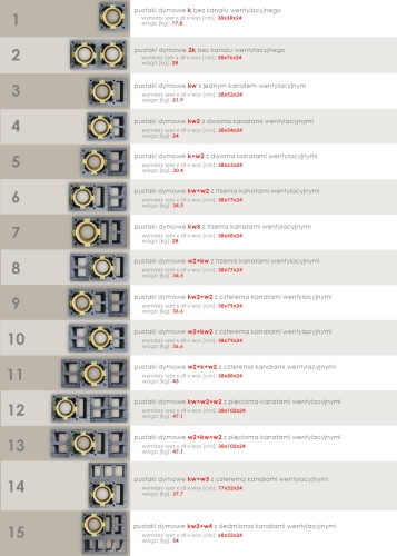 pustak keramzytobetonowy W2: pustaki z keramzytobetonu o klasie LB5 i powyżej. Charakteryzują się wysoką stabilnością jak również trwałością. Posiadają najlepszą izolację akustyczną, są ognioodporne i mrozoodporne.