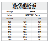 - Zakres średnic systemu: 120–250 mm