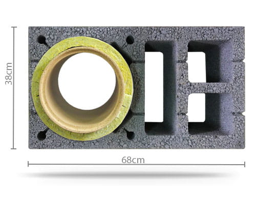 Nasze pustaki kominowe wykonane są z wysokiej jakości keramzytobetonu charakteryzującej się grubością ścianki 50mm. Dzięki szerokim otworom na zbrojenie i większej szerokości pustaka (38cm) niż u konkurencji (grubsza ścianka 5cm), zapewniamy lepszą izolację i stabilność komina.