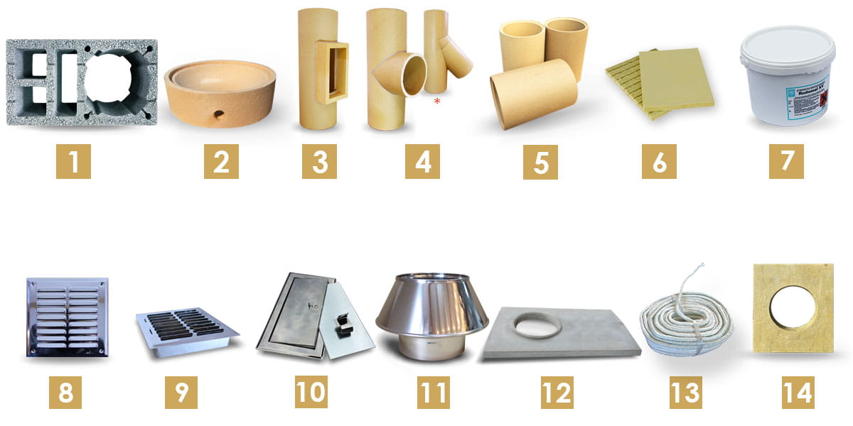 Zestaw zawiera jeden z najlepszych wkładów ceramicznych produkowanych w Europie! Ceramiczne przewody kominowe RHI MAGNESITA A1N1 odporne na pożar sadzy (mają zastosowanie w odprowadzaniu spalin z urządzeń grzewczych opalanych paliwem stałym, gazem lub olejem opałowym w których temperatura spalin dochodzi do 600° C) Jako jeden z nielicznych przewód kominowy w europie posiada certyfikat na budowę o wysokości 50m.