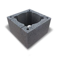 W celu budowy komina ponad dach, w narożnikach bloczka są dodatkowe otwory umożliwiające ułożenie prętów zbrojeniowych.