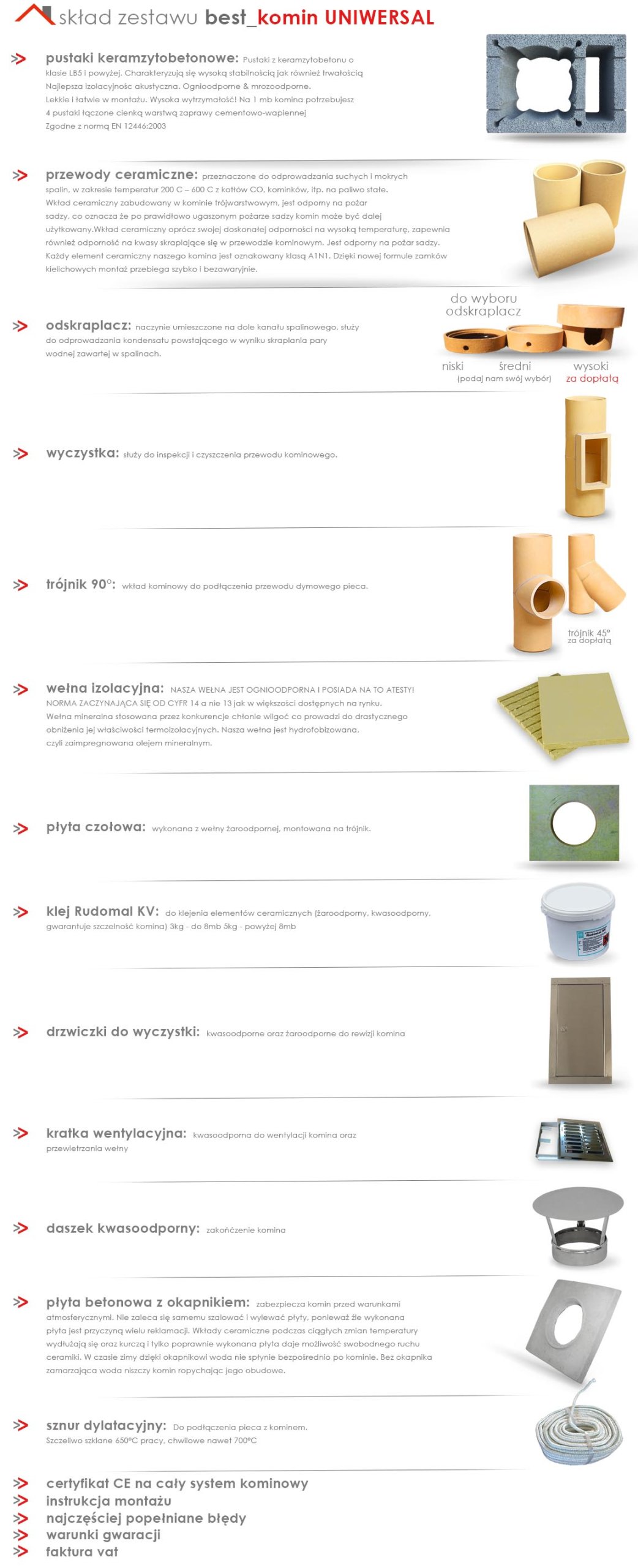 Skład Systemu kominowego BestKomin UNIWERSAL: