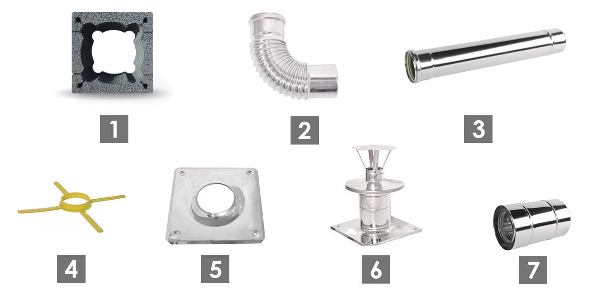 - przewody Turbo kwasoodporne: Systemy te stosuje się do odprowadzenia spalin z kotłów z zamkniętą komorą spalania lub kotłów kondensacyjnych, gdzie temperatura spalin jest niska, poniżej 55ºC. Kocioł kondensacyjny odzyskuje ciepło z pary wodnej zawartej w spalinach. Wyposażony jest w wentylator, który służy do wyrzutu spalin, a przez to wytwarza nadciśnienie w przewodzie kominowym.