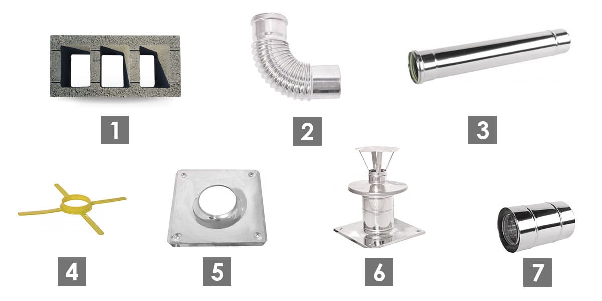 - przewody Turbo kwasoodporne: Systemy te stosuje się do odprowadzenia spalin z kotłów z zamkniętą komorą spalania lub kotłów kondensacyjnych, gdzie temperatura spalin jest niska, poniżej 55ºC. Kocioł kondensacyjny odzyskuje ciepło z pary wodnej zawartej w spalinach. Wyposażony jest w wentylator, który służy do wyrzutu spalin, a przez to wytwarza nadciśnienie w przewodzie kominowym.
