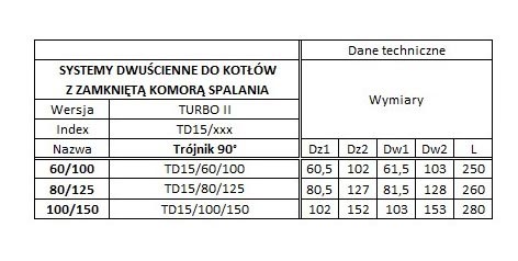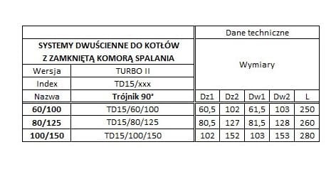 Trójnik 90 st kwasoodporny TURBO dwuścienny gaz