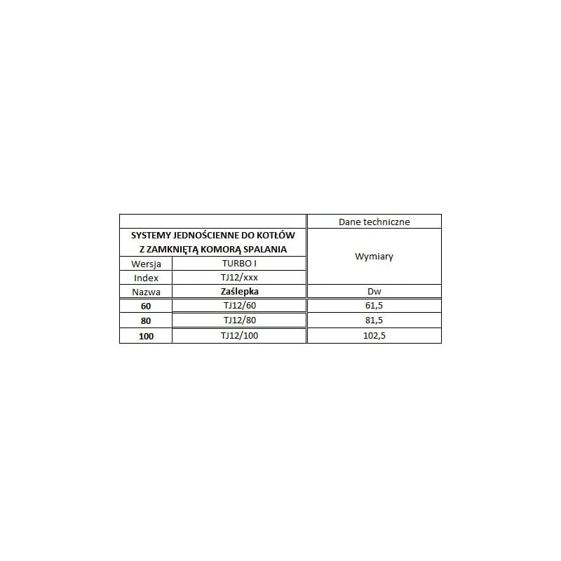 Zaślepka kwasoodporna TURBO gaz